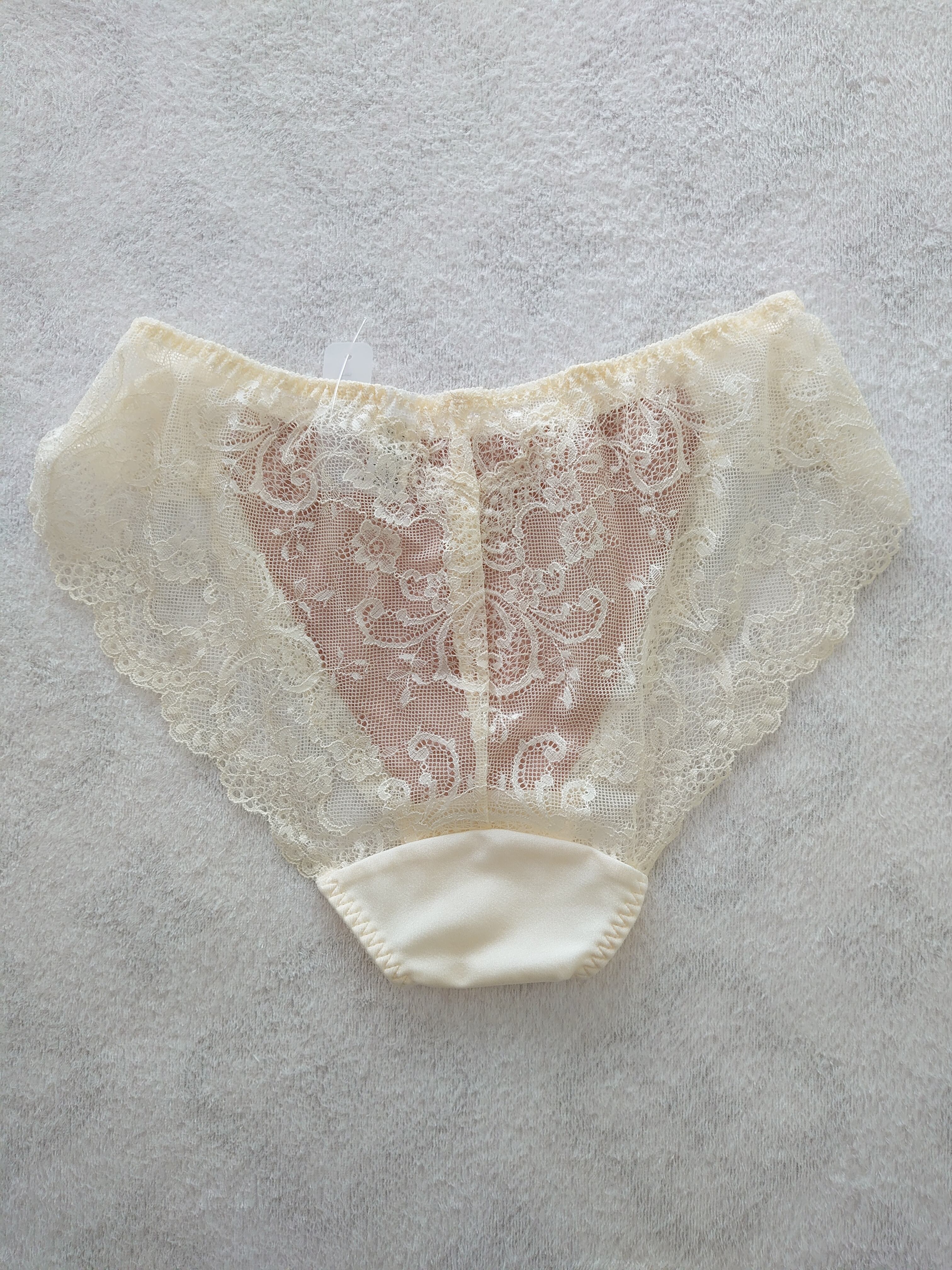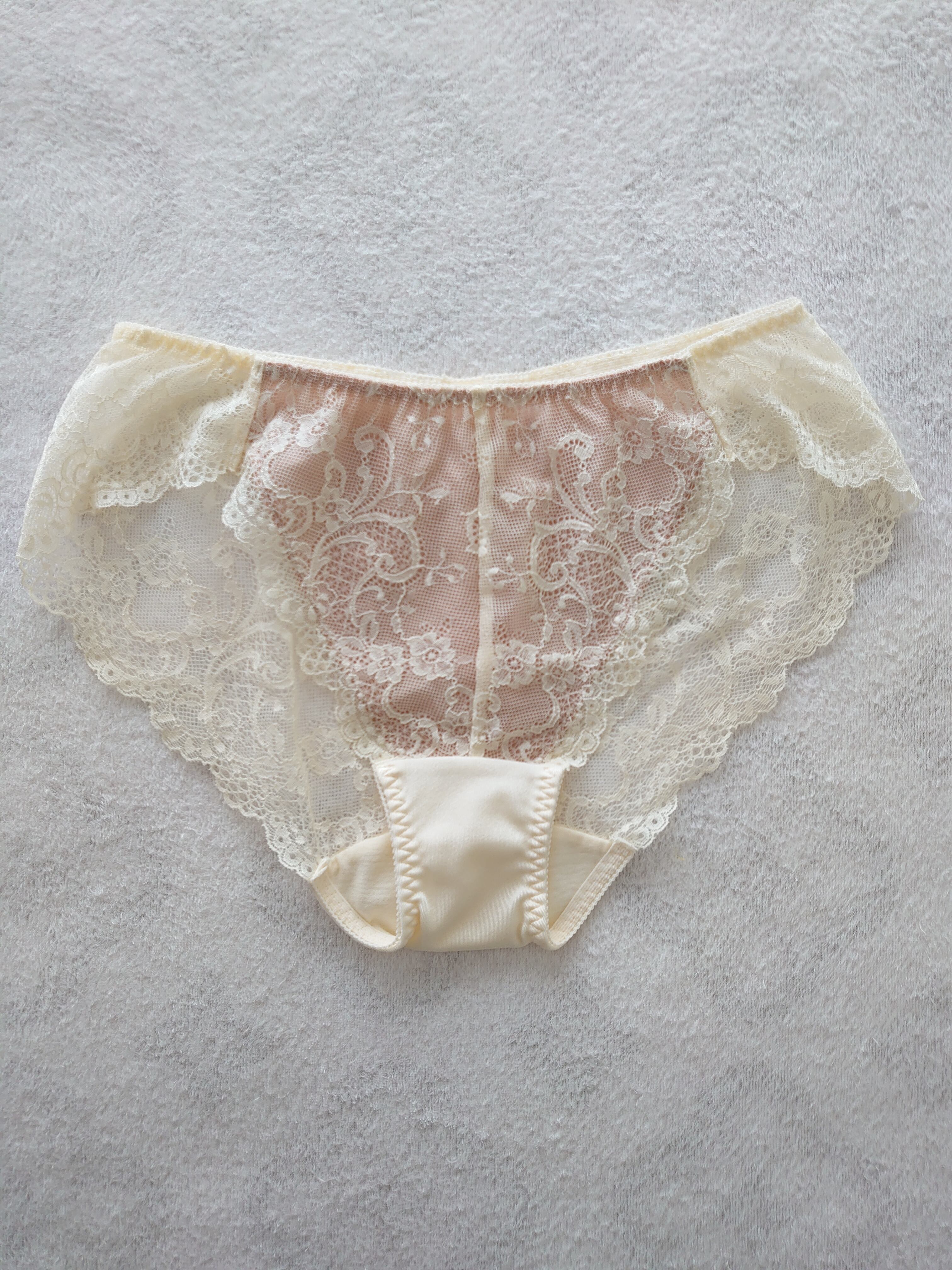 自然なカーブを描く美しいシルエットのスタンダードショーツ(Champagne Gold)。鼠径部にかかる圧迫感をなくした特別な設計で、快適な穿き心地を実現しました。繊細なレースを使用したデザインは、女性らしさを引き立てます。
