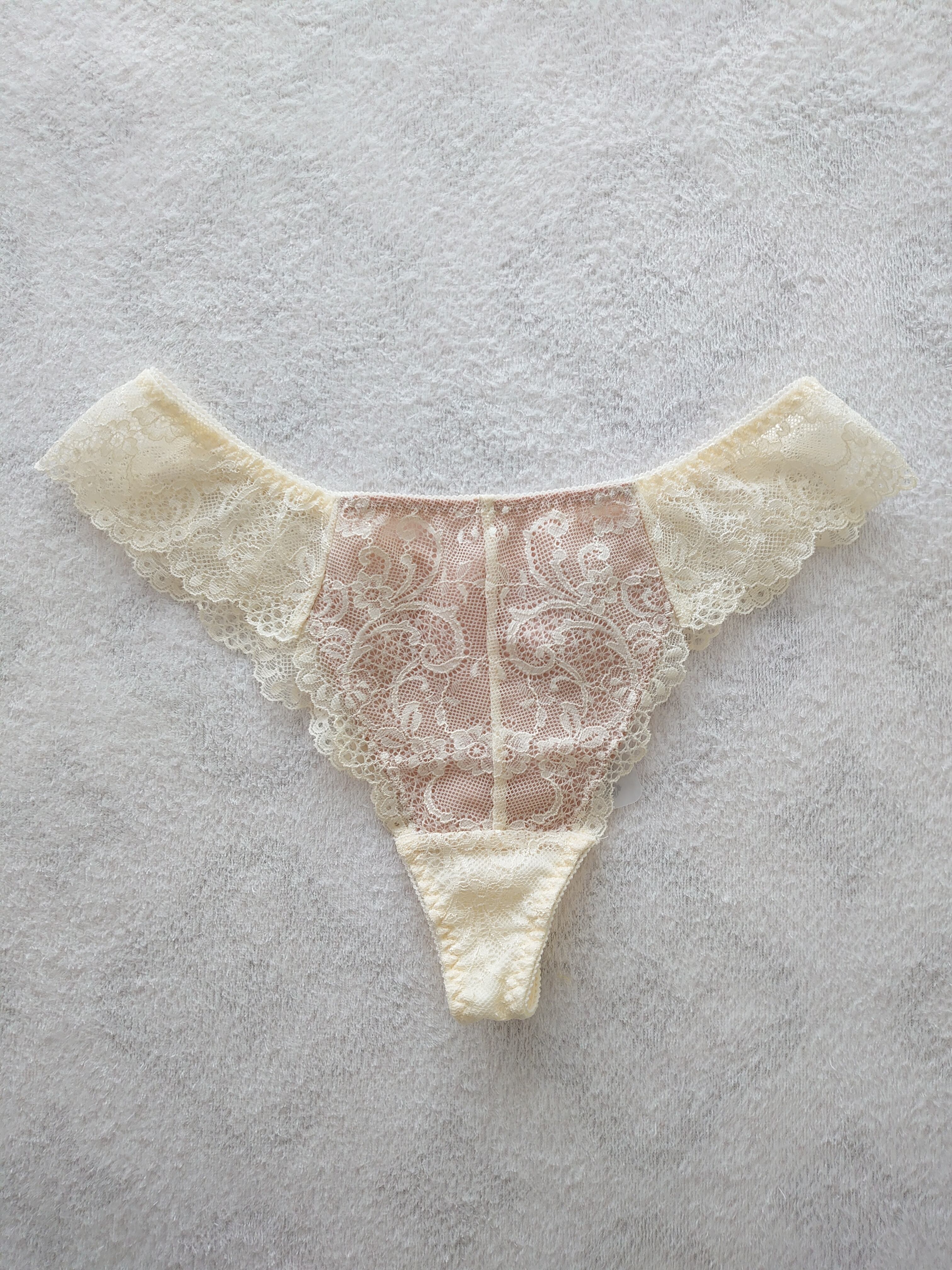 クラシックな中にもセクシーさが漂う、Champagne GoldのTバック。レースを使用したデザインがかわいらしさを引き立てます。セクシーな下着を楽しみたい時だけでなく、普段使いでも快適に着用できます。
